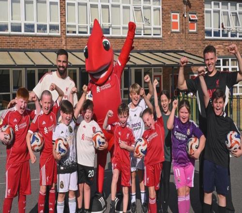 2025-10-10雷速体育10月10日宣 近日,利物浦球队的两名守门员马马尔达什维利和伍德曼与俱乐部吉祥物Mighty Red一同参与...
