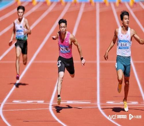 广东队陈冠锋跑出10秒35,以小组第三晋级复赛。