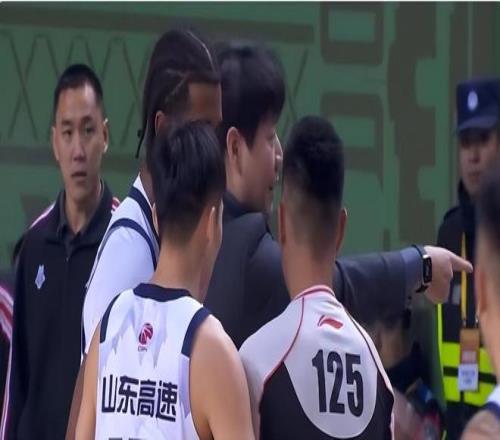 对此,山东男篮队长高诗岩第一个反应,飞快地冲裁判跑去询问。