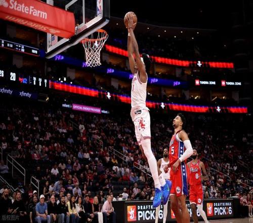 下半场易边再战,第三节上来火箭又是一波8-1,奥科吉疯狂前场篮板给阿门暴扣,火箭领先到了24分,76人喊停。不过暂停也没有什么作用,马克西三分命中分差才回到20分,此后火箭这边进攻又是一波拉开,阿门抢断反击超车暴扣,助攻底角伊森三分命中,分差来到了28分,彻底打花了。三节结束火箭96-73领先23分。